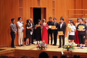 联合国新闻官Elizabeth 与纽约青少年乐团总监马友乘女士为古典音乐学员颁发证书